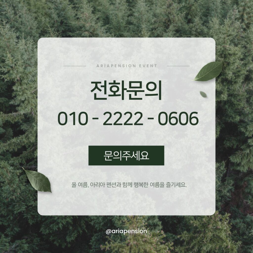 자연과 함께 할 수 있는 아리아 펜션으로 놀러오세요.